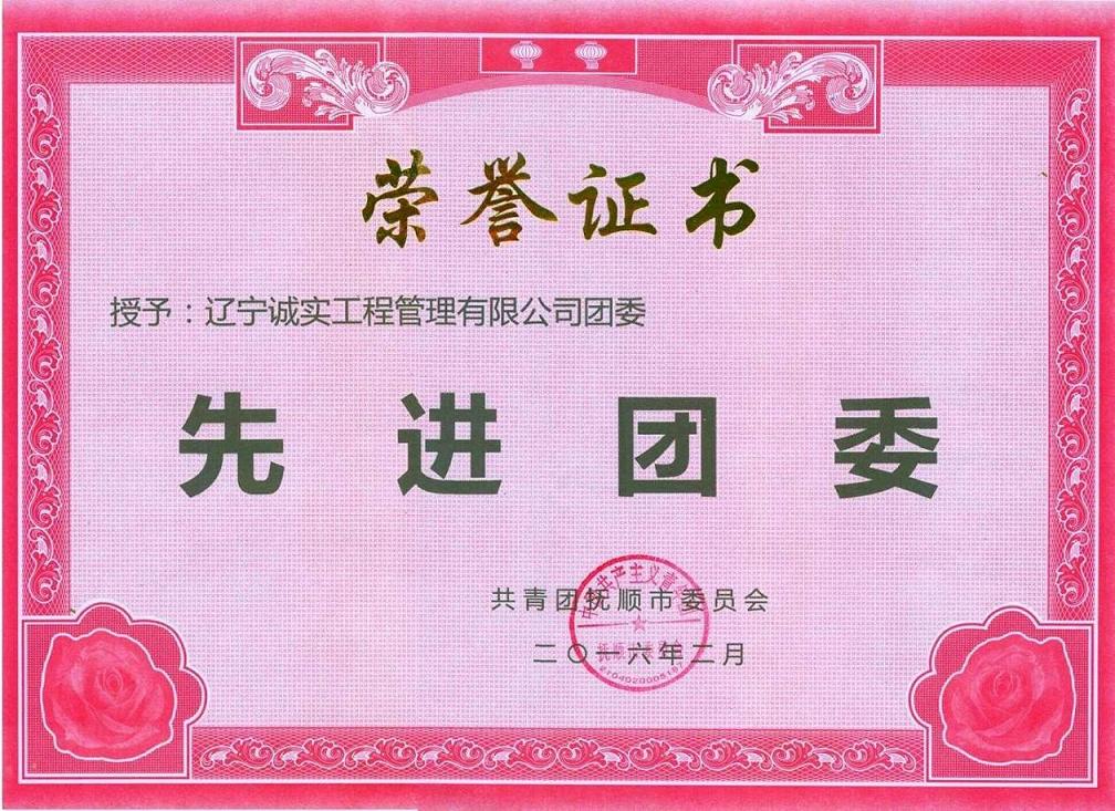 熱烈慶祝遼寧誠實工程管理有限公司喜獲“撫順市先進團委”榮譽稱號
