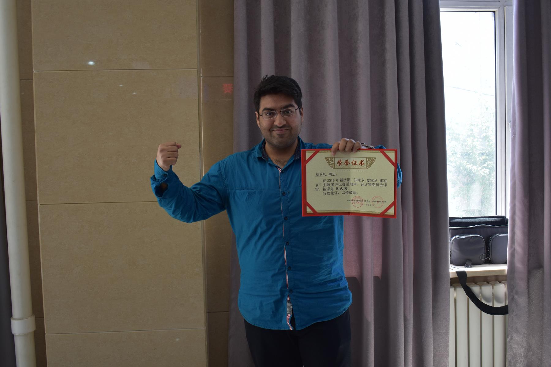 活動得到了全區(qū)機關、企事業(yè)單位廣大青年職工的積極響應,我公司選送了實習員工福載禮,一位來自巴基斯坦的留學生參加了比賽。經(jīng)過預賽的激烈角逐,福載禮與其他13名選手從初賽中脫穎而出,進入決賽。他們們從不同角度和不同層面闡述了對撫順的熱愛之情。他們用如火的激情表達投身家鄉(xiāng)建設的決心;他們用不忘初心的使命踐行新時代新青年的擔當。他們深情地講述一個個生動真實的故事,對“知家鄉(xiāng) 愛家鄉(xiāng) 建家鄉(xiāng)”做出最好的詮釋。他們的精彩演講不時贏得評委和現(xiàn)場觀眾的陣陣掌聲。